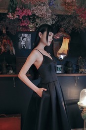 ハリがあり、落ち着いた光沢の美しい生地でのお仕立てですので、パーティドレスにはもちろん、ブラウスやTシャツ等の上に重ねて普段着としてもご着用頂けます。