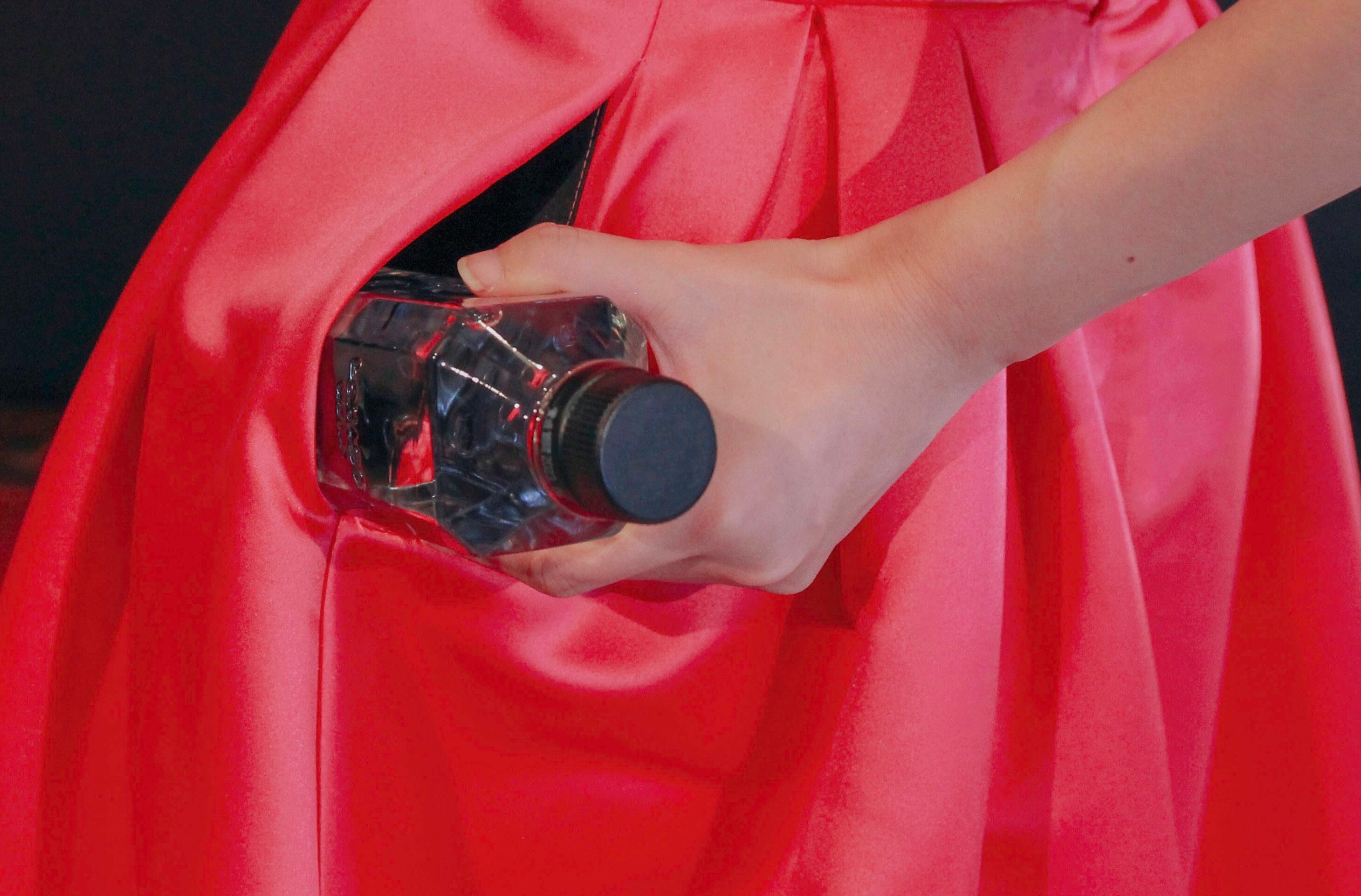 背中のファスナーで着脱、黒色の深めのポケットが両脇に付いています。(マゼンタピンクに変更可)