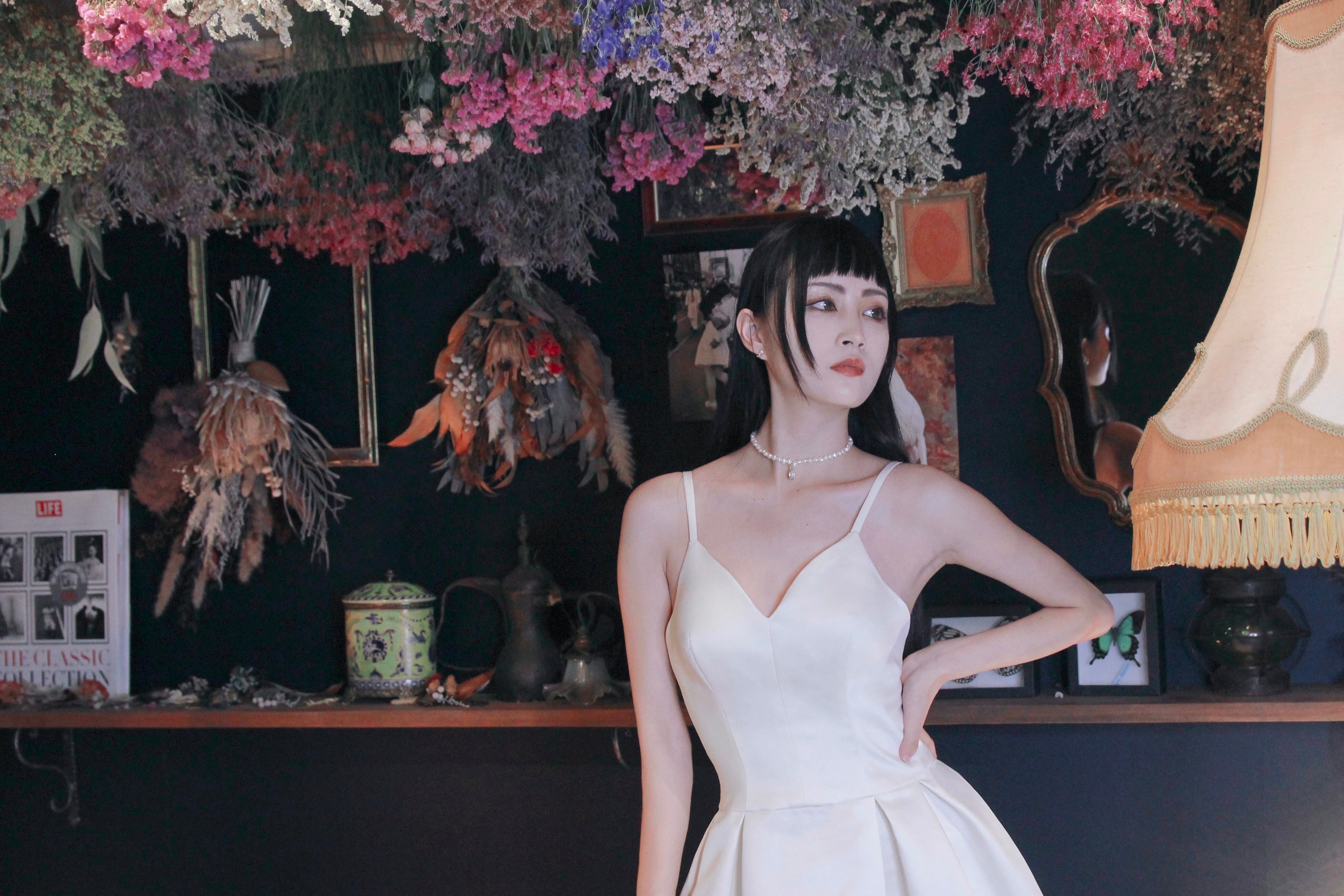 ハリがあり、落ち着いた光沢の美しい生地でのお仕立てですので、カジュアルウェディングにはもちろん、ブラウスやTシャツ等の上に重ねて普段着としてもご着用頂けます。